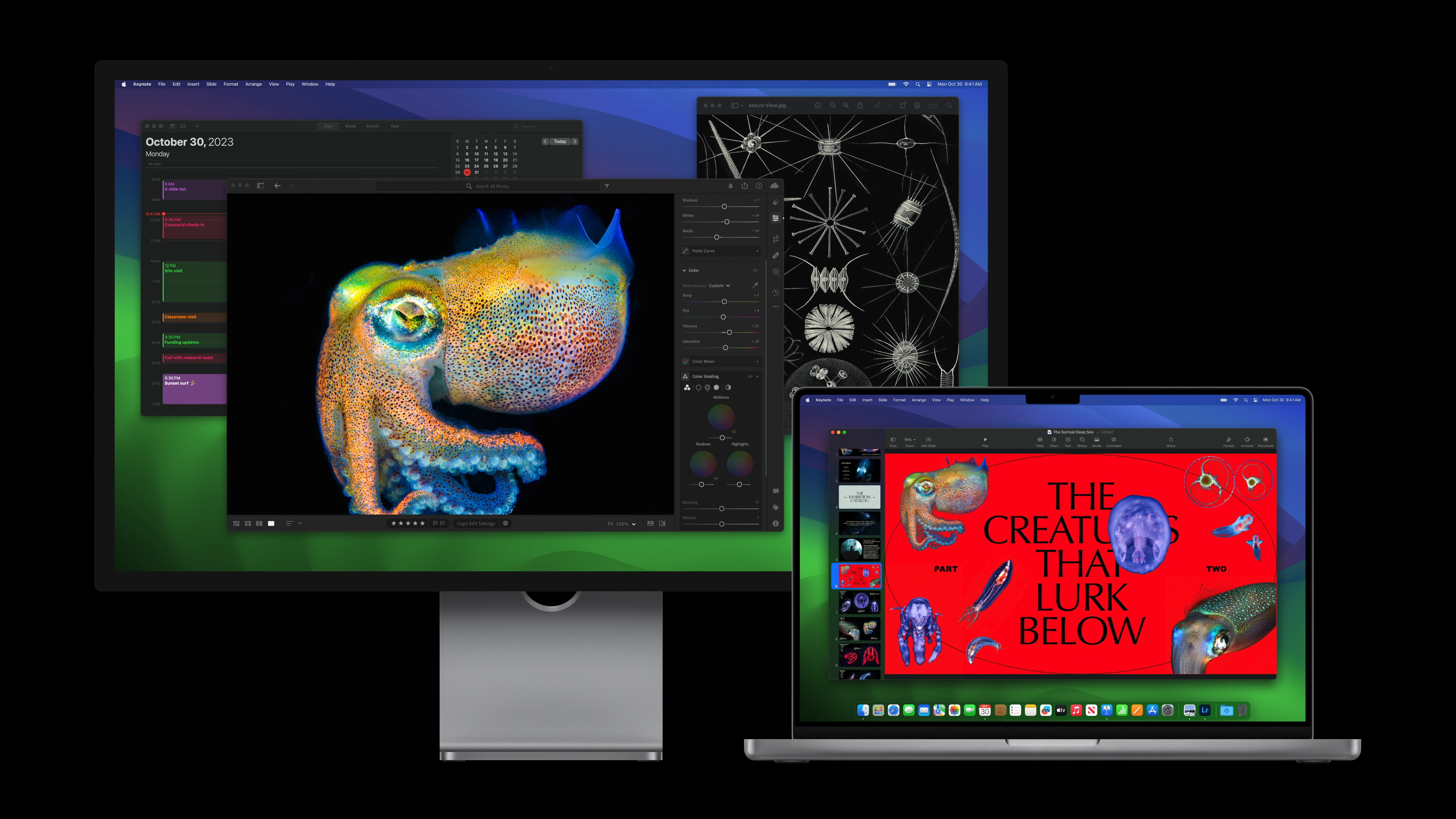 M3 Pro 칩은 이 모든 작업을 문제없이 수행하며 2대의 고해상도 외장 디스플레이 연결까지 지원합니다.