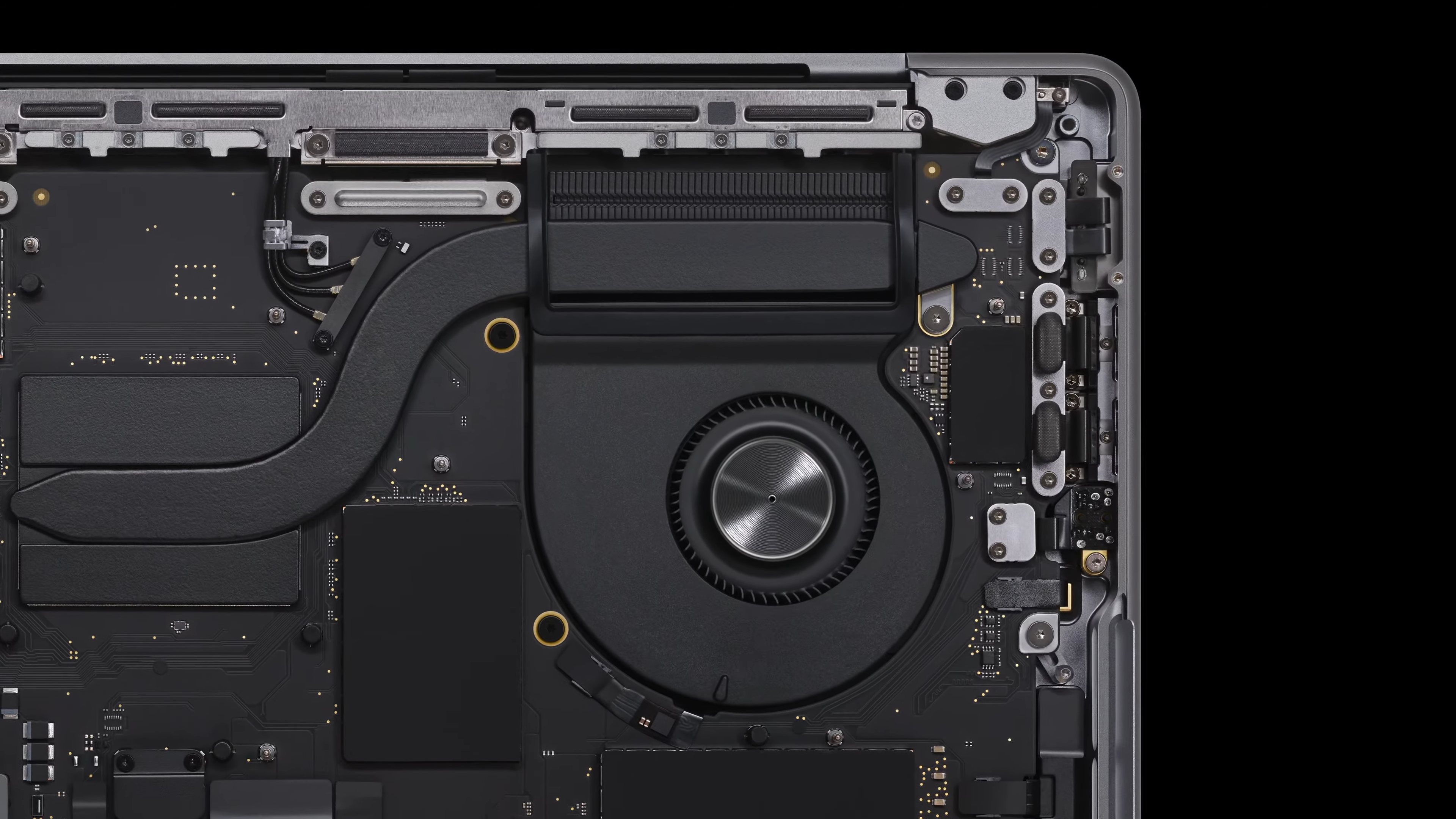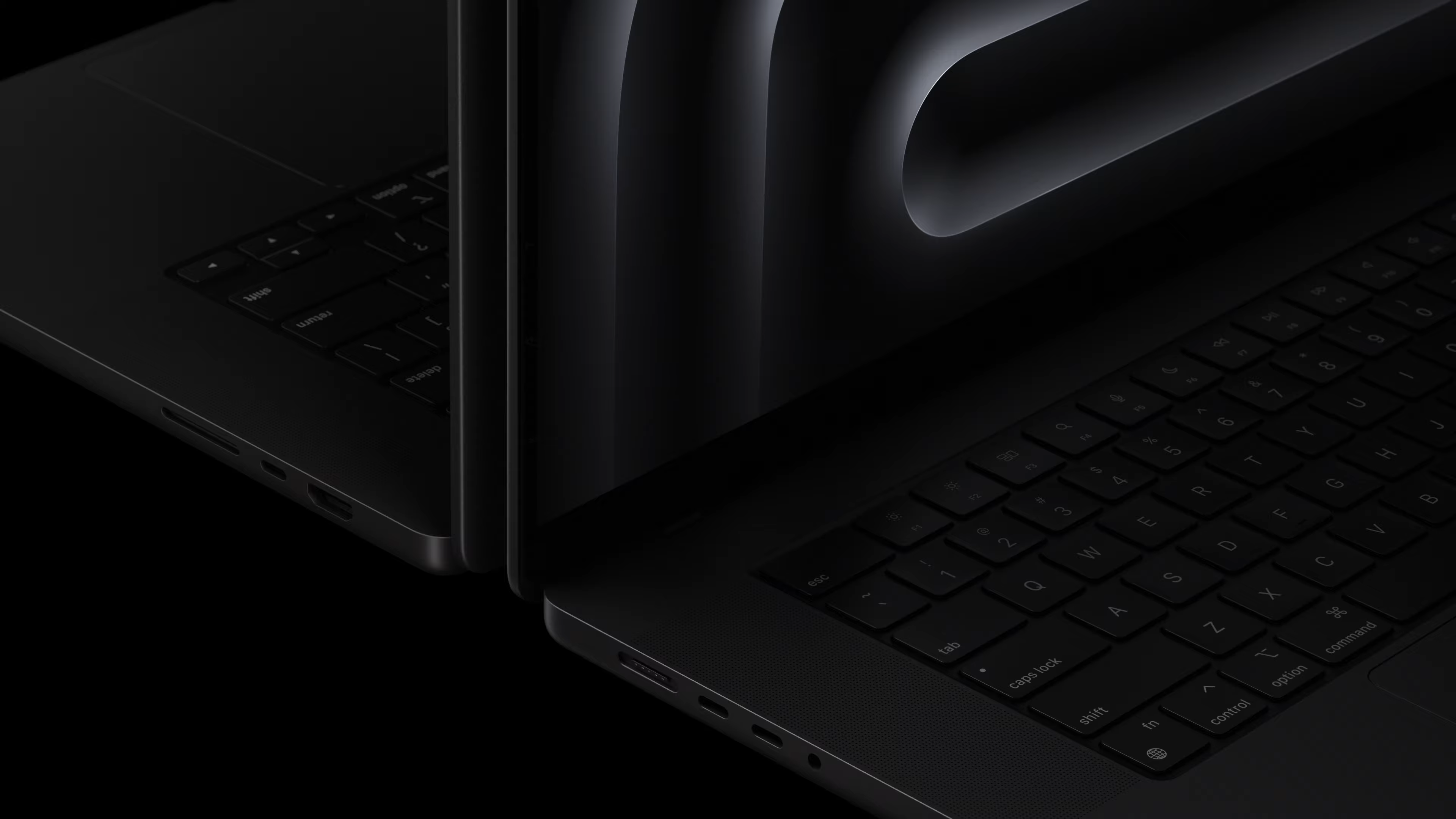 이제 새로운 Macbook Pro 맥북 프로의 숨 막히게 멋진 새로운 색상과 자태를 보여드리겠습니다. 스페이스 블랙의 매력적인 다크 알루미늄 마감에 혁신적인 화학 공정을 거친 산화 피막 실링 층을 형성해 지문 자국을 대폭 감소 시켰습니다. 놀랍도록 아름답고 뛰어난 내구성을 자랑합니다. 외장은 특수 합금으로 제작한 100% 재활용 알루미늄입니다.